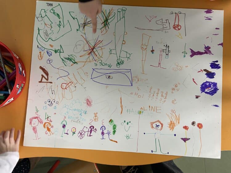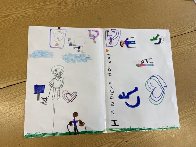 Nous avons aussi pu travailler sur un slam de l’artiste Grand Corps Malade étant lui-même handicapé. Les enfants avaient pour objectifs d’identifier les phrases marquantes du slam ou leurs phrases préférées et de les illustrer par un poème ou un dessin.