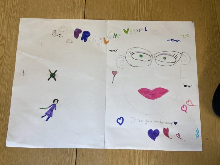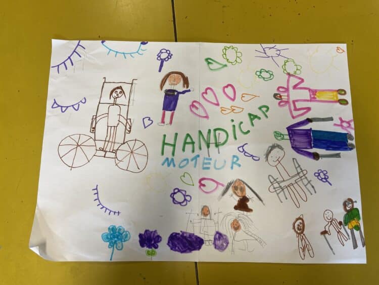Que ce soient les personnes malvoyantes ou aveugles, les personnes atteintes de handicap mentaux et invisibles ou mêmes les personnes atteintes de handicap moteur, les enfants ont pu nous proposer des affiches qui selon eux été représentatives du handicap qu’ils avaient choisi.