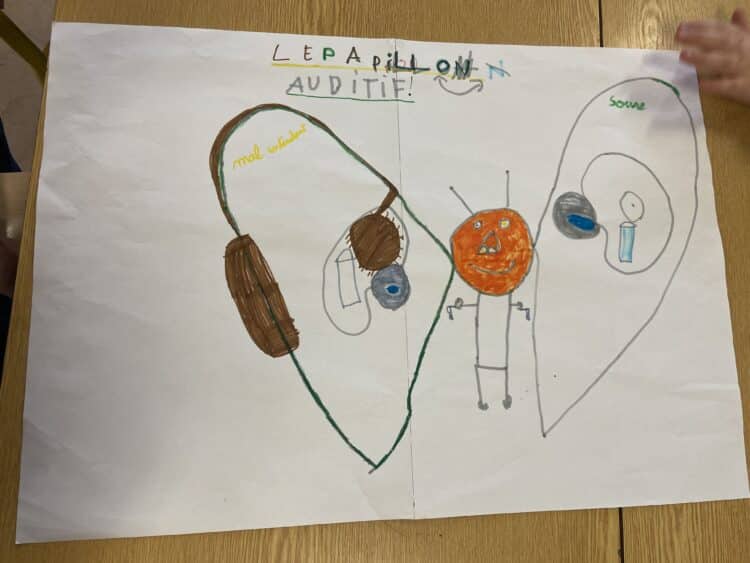 Nous avons travaillé avec l’aide de la malle « sensibilisation au handicap ». Nous avons alors expérimenté différents jeux qui requiert un ou plusieurs sens.