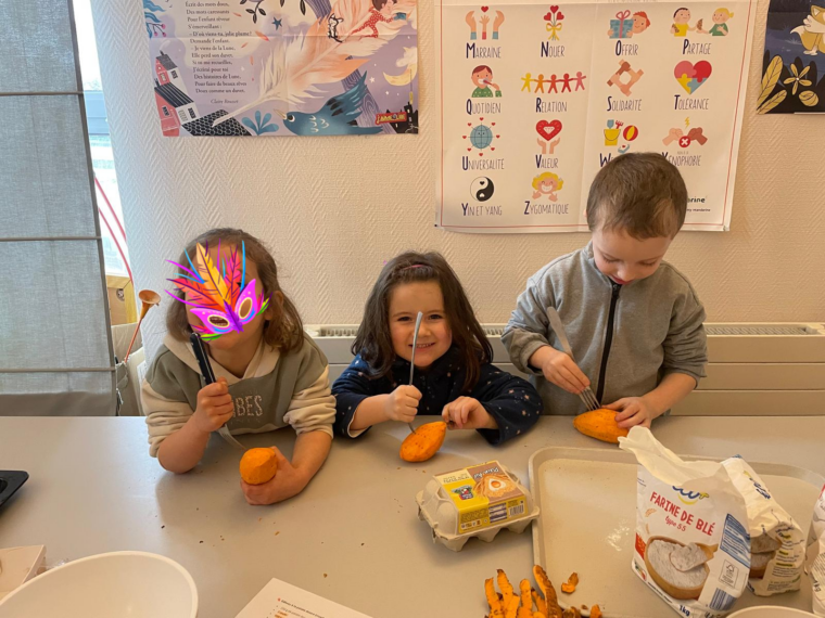 Pendant les vacances de février le centre de loisirs s’est transformé en véritable voyage autour du monde, placé sous le thème « Carnaval et couleurs du monde ». Chaque jour les enfants ont exploré un nouveau continent à travers des activités, des jeux, des créations et même des goûters inspirés des cultures découvertes. Tous les goûters ont été 100 % faits maison ou préparés avec des produits issus de producteurs locaux pour un moment gourmand, responsable et plein de saveurs.