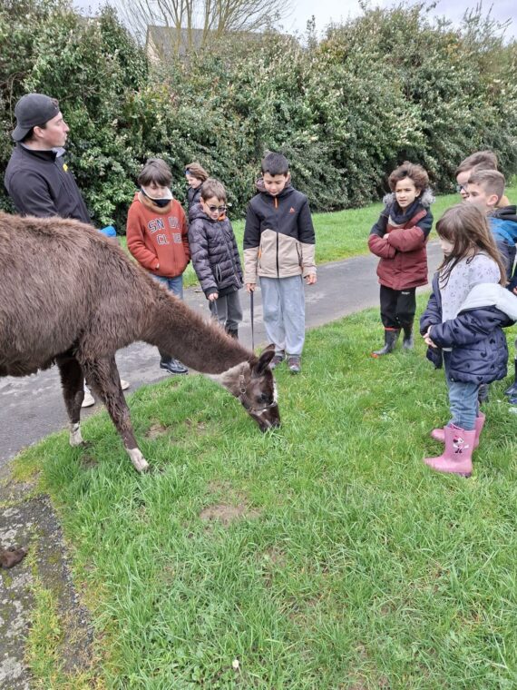 La première semaine a été marquée par une rencontre : Les Escapades du Meugon sont venues nous présenter deux lamas adorables. Les enfants ont pu en apprendre davantage sur leur mode de vie, leur caractère et leurs besoins. Ils ont également eu la chance de les brosser et de partir en balade avec eux un moment doux et surprenant qui a beaucoup marqué les petits comme les grands.