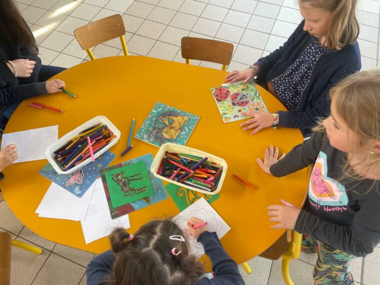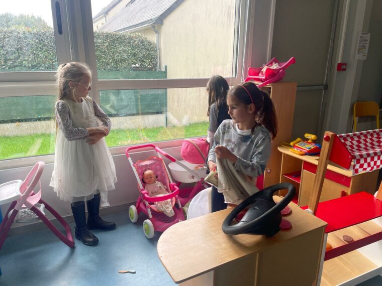 Chaque jour, les enfants ont commencé la journée avec Marie-Dominique, Marie-Noëlle, Elodie et Lucie. Jeux libres et discussions ont permis de faire la transition en douceur entre la maison et l’école.